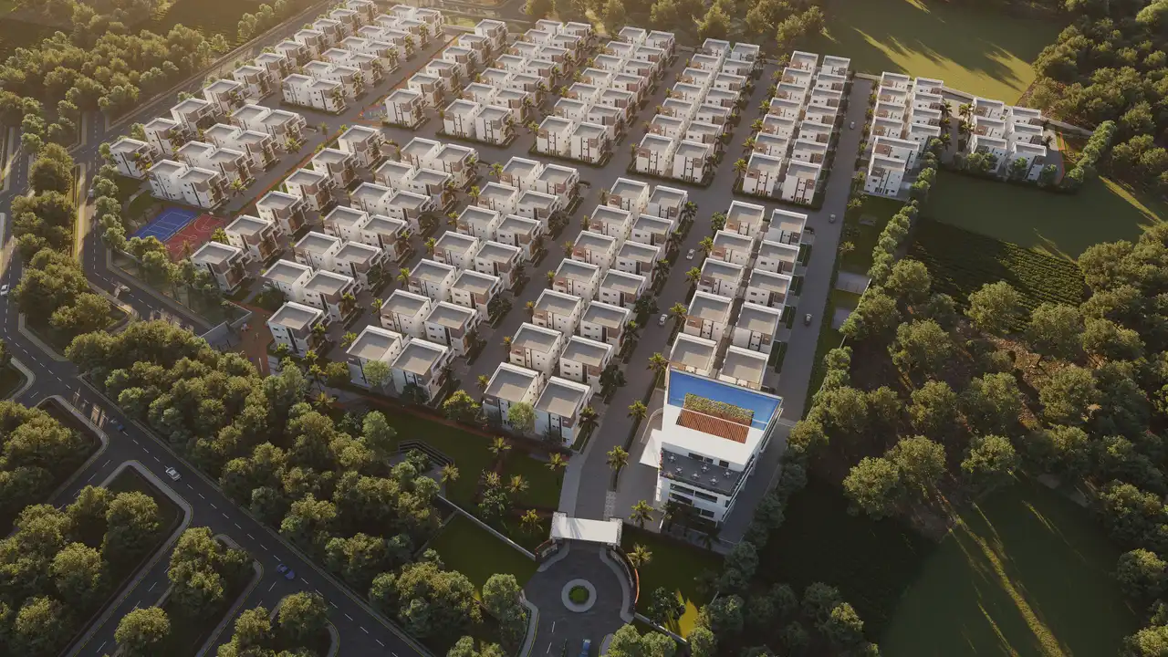 Discover 168 Luxury Independent Villas nestled across 19 acres (31.5 guntas) of lush greenery in Raviryal. Designed to harmonize nature with opulence, the project features: